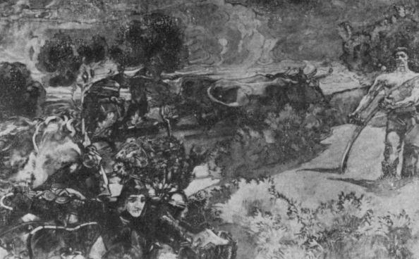 Каменный век. 1899 г. Эскиз панно. Б., акв. Частное собрание. США.