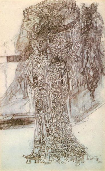 Пророк. «Моих зениц коснулся он…». 1905 г. Б., граф. кар. акв., белила, тушь. ГТГ.