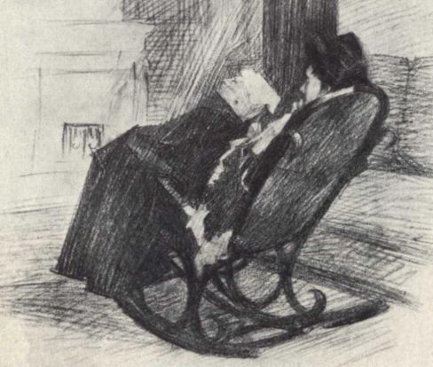 Забела-Врубель в кресле-качалке. 1904 г. Б., кар. ГРМ.