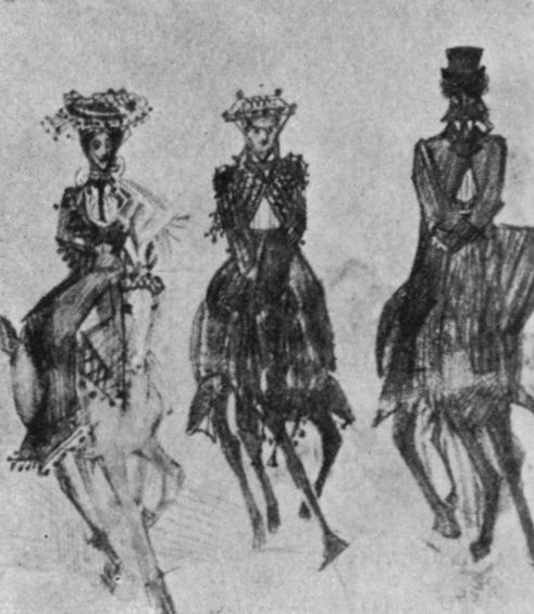 Всадники. 1905 г. Б., кар. На обороте портрета доктора Ф. А. Усольцева. Частное собрание. Москва.
