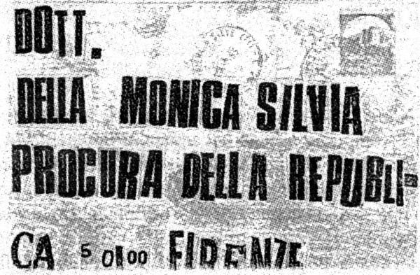 Сильвия делла Моника была единственной женщиной среди ведущих дело Монстра. Это письмо перевернуло ее жизнь. Ужас сломал ее. Она немедленно отказалась от работы по делу, к ней приставили двух телохранителей, которые оставались с ней даже во время работы в запертом кабинете, потому что она боялась, что Монстр, смешавшись с людьми у входа в палаццо Джустиция, проникнет внутрь и проберется к ней в кабинет. Больше она не вмешивалась в это дело.