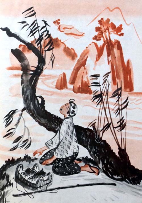 – Как же взлечу я на небо? – Потом слезы свои отерла и молвила: – Уступи мне немного земли. Залью я ее водой и посажу лотосы, а как зацветут они, надергаю нитей из стеблей, ткань сотку и платье сошью.