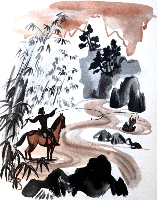 Вытащив бадью на берег, дядюшка посадил Сампэя впереди себя на седло, и они поскакали.