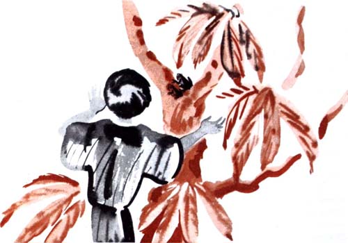 И это наскучило Сампэю. Тогда они решили пойти в лес за цветами. В лесу цвели колокольчики и патринии, в траве стрекотали кузнечики. Срывая цветы и гоняясь за кузнечиками, Сампэй то близко, то далеко слышал оживленные голоса мальчишек.