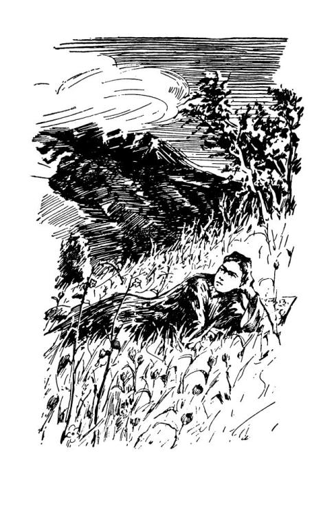 А повернув голову вправо, он увидел долину с черными полосами вспаханной земли, с цветущими садами, с деревьями, вытянувшимися в струнку вдоль дорог, с бесконечными рядами домов. Отсюда всё казалось так хорошо организованным, так мудро сложенным, что душу охватывал восторг перед трудом человека. Легкий ветерок тронул головки маков и тюльпанов, и они нагнулись и слились в сплошной ковер. Ветер взъерошил молодую листву деревьев, собрал все дымы кишлака в одну струю и она, извиваясь, потекла в ущелье, повторяя движение весеннего ручья. Всё блестело, сверкало, переливалось, и такой восторг охватил душу Анвара, что он неожиданно запел, запел без слов…