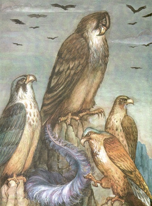 На самом-то деле перо вводило в обман многих зверьков, и они принимали сокола за безобидную птицу. И попадали, бедняги, соколу в когти. Понятно, что решение собратьев разгневало удачливого сокола, да и остальные соколы вскоре между собой перессорились.