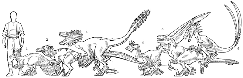 Современные дромэорапторы (обычно их называют просто «рапторы») произошли от ранних дромэорапторов, свирепых охотников внушительных размеров. Судя по многочисленным останкам, найденным по всему миру, дромэорапторы когда-то имели широкий ареал обитания, но на сегодняшний день они почти все истреблены. Лишь незначительное количество менее агрессивных рапторов все еще встречается в дикой природе. Генетический анализ говорит о том, что их предки – одомашненные ранние дромэорапторы. Селекционное разведение способствовало снижению агрессивности вида, но, к сожалению, многие люди по-прежнему боятся этих существ и убивают их.