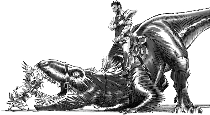 Но было слишком поздно. Тиранн уже опустил голову, приготовившись наконец слопать свою жертву… Но Хейтер опять сильно натянул поводья: