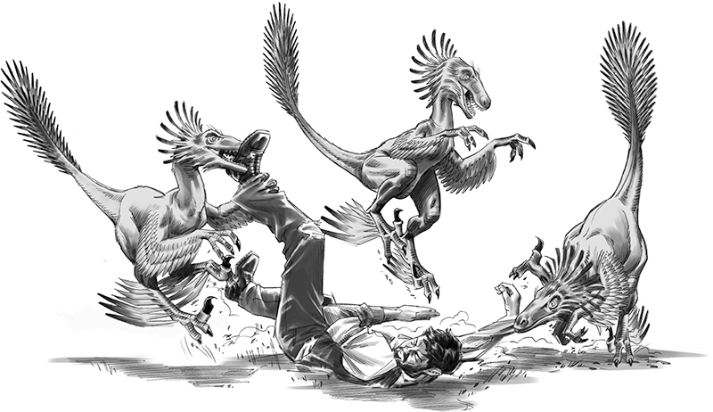 Картер не сдавался. Он дал команду своей стае, и все тенезавры, распушив обычно незаметные нимбы перьев, зашипели.