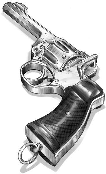 Он вынул револьвер из кобуры, откинул барабан и незаметно вытряхнул пули, а потом резким движением запястья вернул барабан на место. Подмигнув Би, он отдал ей револьвер.
