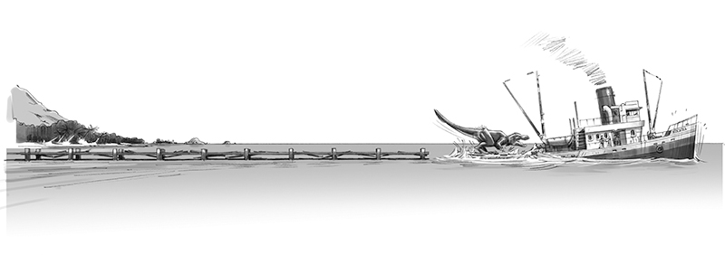 Завр уже почти достиг конца пристани, а капитан Вудс пустил «Косатку» полным ходом, но этого оказалось недостаточно. Тиранн оттолкнулся от причала и приземлился на корму, сразу затопив хвостовую часть.