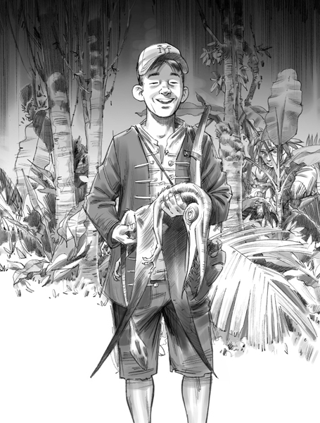 – Несмотря на свою кличку, Юный уже немолод, и у него очень тяжелые веки, – начал объяснять Сэмми. – Его возраст можно определить не только по длинным боковым шипам, но и по толщине костяных чешуек на веках.