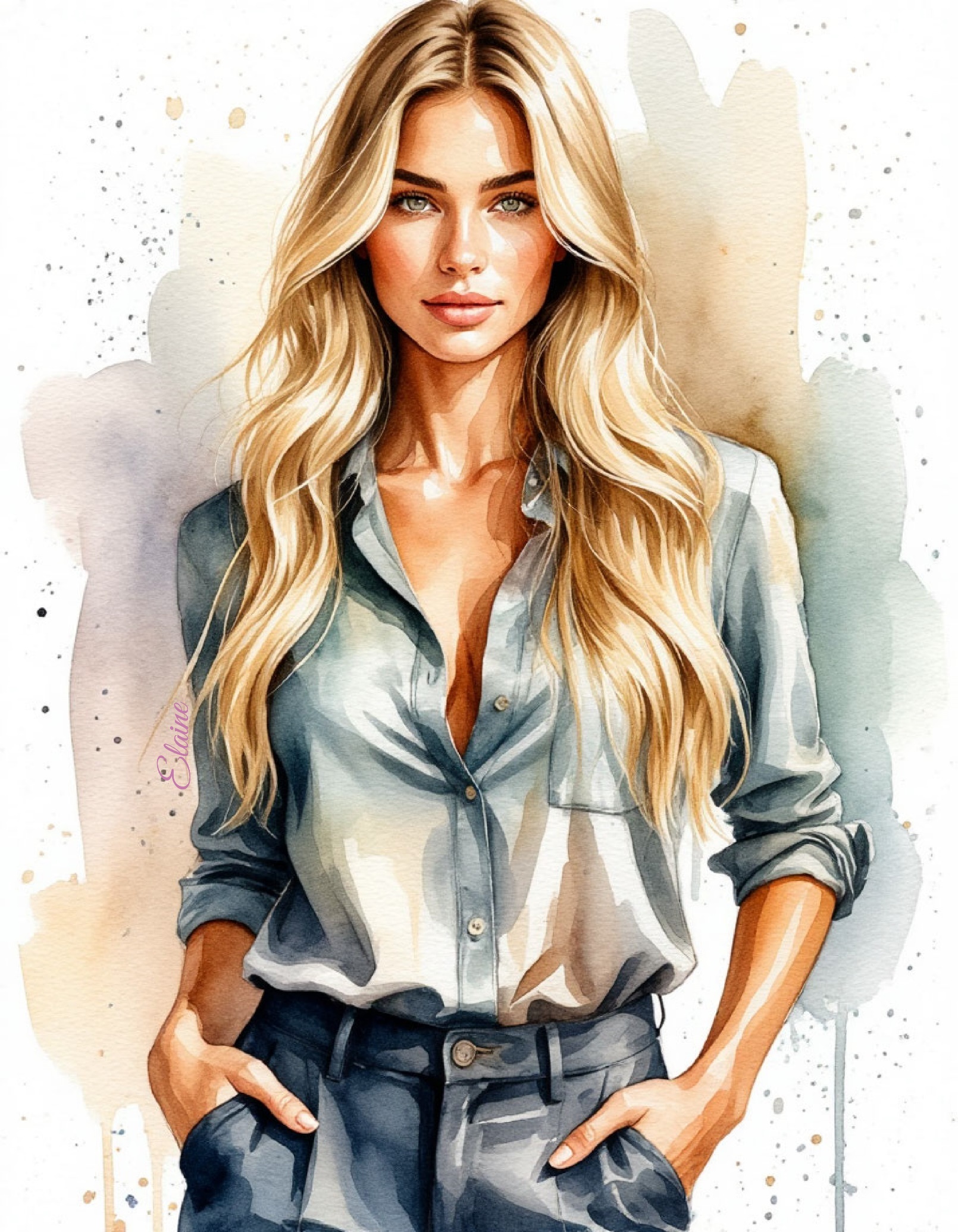 Грейс элегантным движением руки откидывает свои длинные рыжие волосы с шеи, что делает ее еще более неотразимой.
