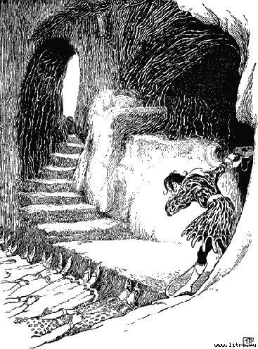 А история рассказывает, что там было темно и Юрген не мог ничего разглядеть. Пещера тянулась вперед и вниз, а в дальнем конце мерцал свет. Юрген все шел и шел, и так добрался до того места, где увидел кентавра. Эта часть пещеры сейчас была пуста. Но дальше того места, где прежде в ожидании Юргена лежал Несс, в стене пещеры имелся проем, и из него струился свет. Юрген встал на четвереньки и заполз в это отверстие.