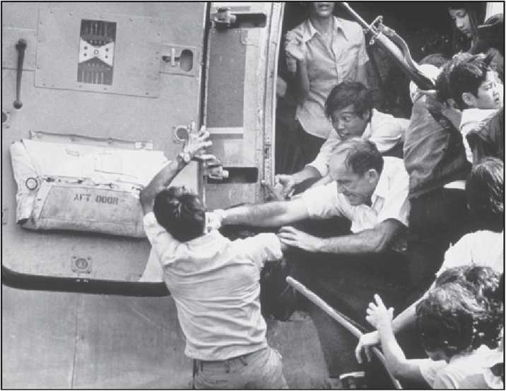 Американский чиновник бьет мужчину, прижавшегося к двери самолета, уже переполненного беженцами, пытавшимися бежать из Нячанга, Вьетнам, апрель 1975 года. © Bettmann/CORBIS.