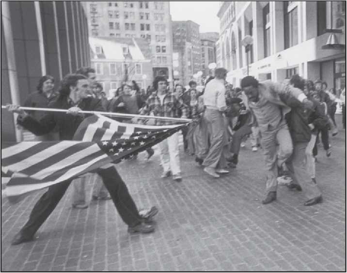 «Загрязнение старой славы»: Забивание чернокожего мужчины во время празднования двухсотлетия Бостона, июль 1976 года. Стэнли Дж. Форман.