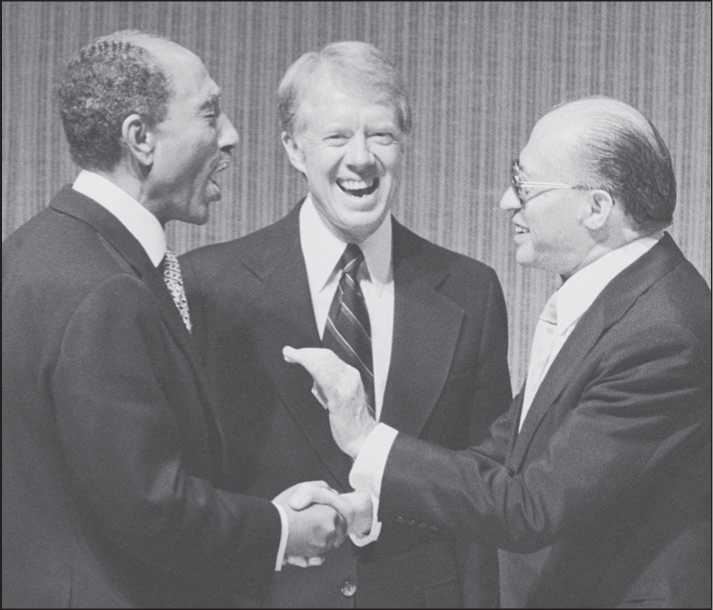 Президент Джимми Картер с президентом Египта Анваром Садатом (слева) и премьер-министром Израиля Менахемом Бегином во время подписания Кэмп-Дэвидских соглашений, Белый дом, март 1979 года. © Bettmann/CORBIS.