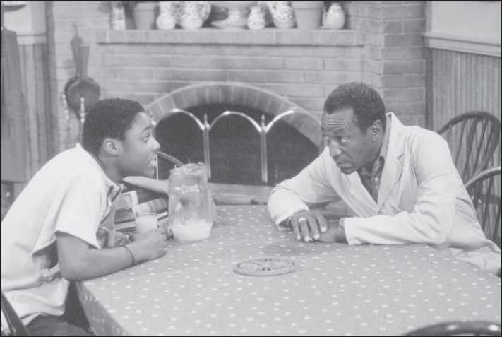 Билл Косби с Малкольмом Джамалом Уорнером в сцене из «Шоу Косби», 1985 год. © Jacques M. Chenet/CORBIS.