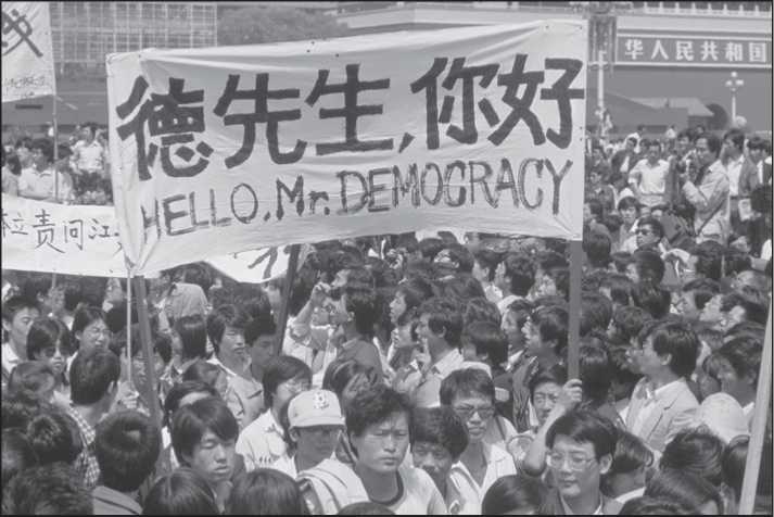 Демонстрация китайских студентов на площади Тяньаньмэнь, Пекин, 4 мая 1989 года. © Питер Тернли/CORBIS.
