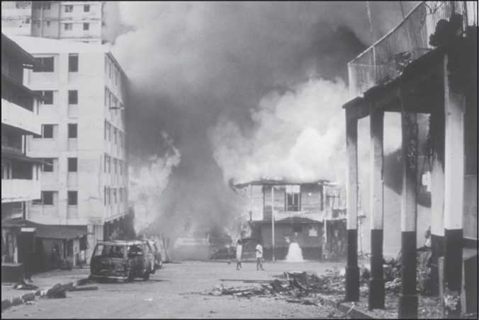 Разрушения в Панаме во время свержения американцами Мануэля Норьеги, декабрь 1989 года. Spec. Морланд/Центр оборонной визуальной информации, Риверсайд, Калифорния.