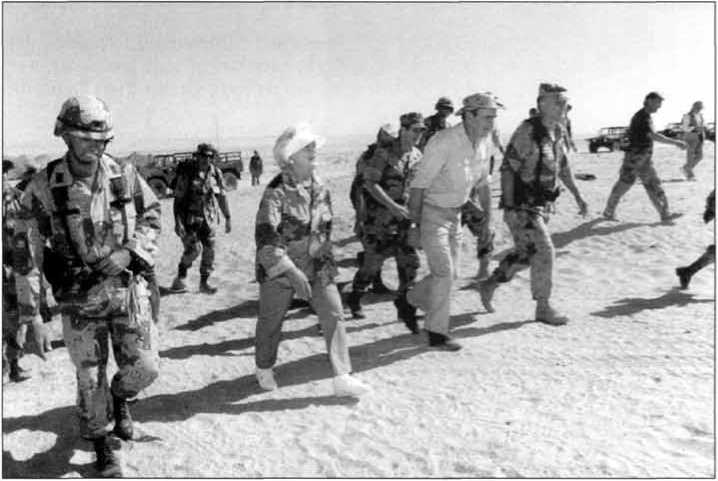 Президент Буш и его жена Барбара. Саудовская Аравия, ноябрь 1990 года. Генерал Норман Шварцкопф слева от Буша. Президентская библиотека имени Джорджа Буша.