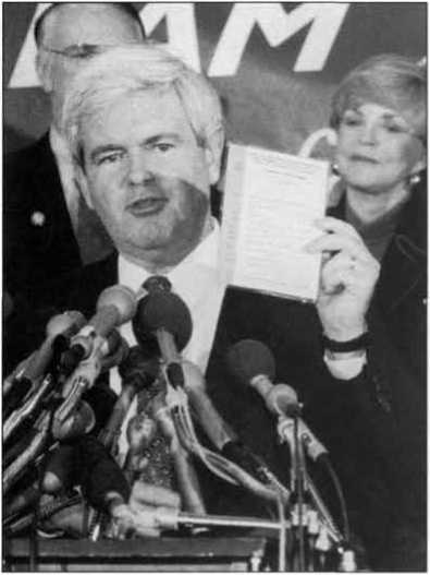 Ньют Гингрич держит в руках «Договор с Америкой» республиканцев, 1994 год. © Reuters/CORBIS.