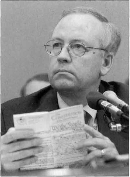 Независимый адвокат Кеннет Старр читает Конституцию США во время заседания судебного комитета Палаты представителей по импичменту, 19 ноября 1998 года. © Reuters/CORBIS.