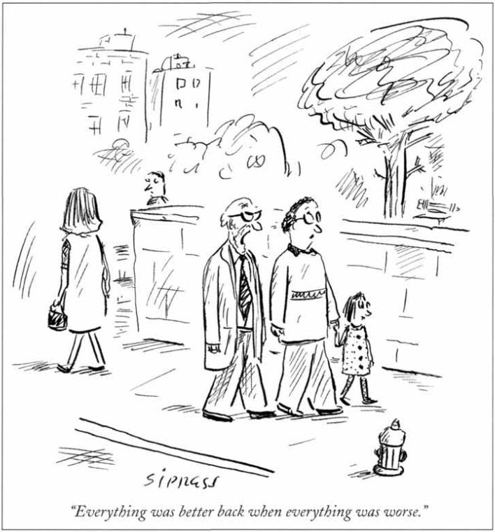 «Все было лучше, когда все было хуже.» Размышления 2003 года о прошлом и настоящем Америки. © The New Yorker Collection 2005 Дэвид Сипресс с сайта cartoonhank.com. Все права защищены.