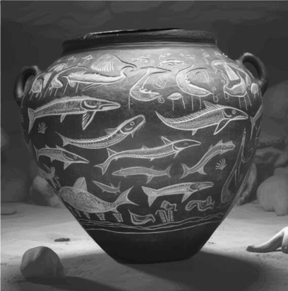 – На этом горшке вырезаны не только киты, но и другие морские обитатели.