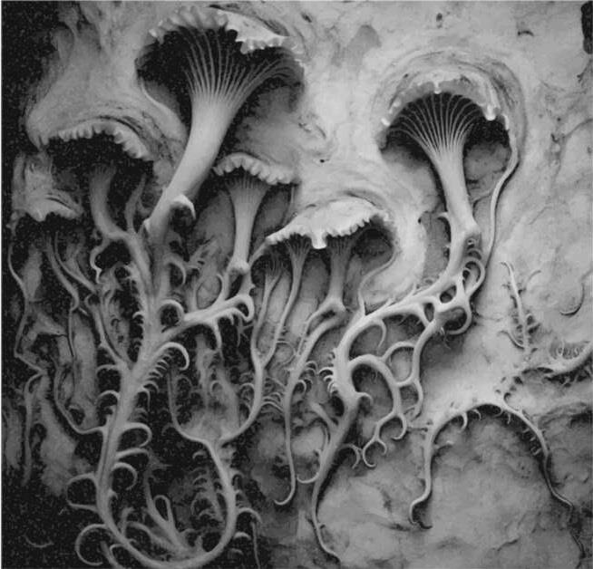 Элли отошла в дальний конец туннеля, привлеченная еще одним скульптурным произведением искусства. Прямо напротив тотема кита на стене была глубокая резьба, на которой была изображена коллекция странных цветущих растений с острыми шипами. Они были очень похожи на те, что выгравированы на троне. Только эти образцы выглядели так же тонко, как анатомический рисунок ботаника, настолько совершенными, что казалось, будто они выросли из стены, а затем окаменели на месте.