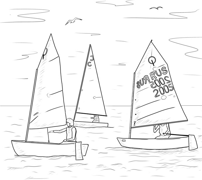 Ребята выстроили яхты на берегу, расположив их в одну линию и готовясь к спуску на воду. Они собрались вокруг тренера, уже готовые к выходу в море – в гидрокостюмах и спасательных жилетах, теплых повязках от ветра и специальных ботинках. Тренер что-то объяснял и показывал: он рисовал ногой на песке схему, рассказывал про правильное движение яхты относительно ветра, а после дал команду спускать лодки на воду и идти под парусом. Роберт отправился следом за детьми на моторной лодке. С пляжа было видно, как тренер подплывал к каждой яхте, видимо, чтобы дать какие-то указания.