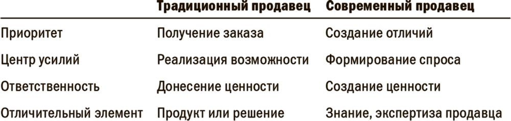 Приоритет лучших современных продавцов – в создании отличий. Они рассматривают себя в качестве инициаторов перемен, развивающих бизнес заказчика. Такие продавцы знают, что, если они помогут своим клиентам решить проблемы и достичь целей, успех гарантирован.