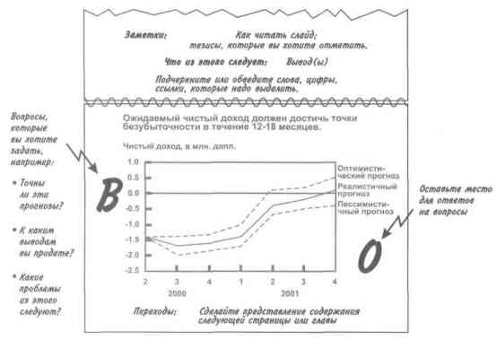 По завершении работы над слайдами подготовьтесь к самому совещанию. На каждой странице своего экземпляра слайдов подчеркните или обведите слова, цифры и ссылки, на которые надо будет обратить внимание, и напишите заметки.