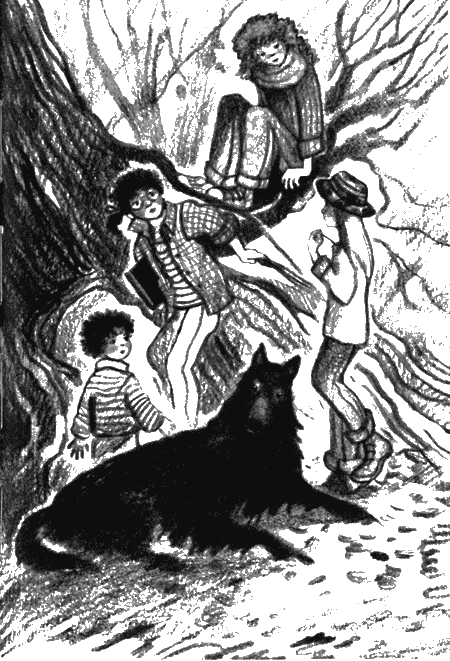 Бетти решила обниматься, стоя во весь рост в своей красной тележке. Когда подошла её очередь, она гордо выпрямилась, но тут Пёс решил к ней присоединиться и от избытка чувств опрокинул тележку вместе с Бетти. Подхватив младшую дочь на руки и осмотрев её на предмет ушибов и повреждений – ни тех ни других не обнаружилось, – мистер Пендервик распахнул для тёти Клер дверцу машины.
