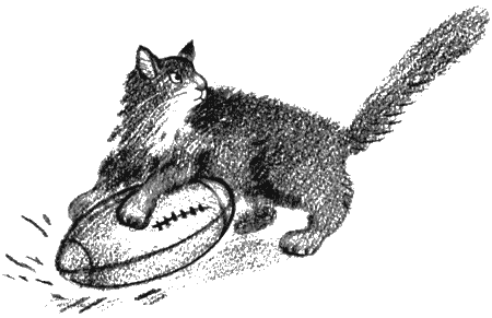 Они, как всегда, отработали сначала стандартные передачи и успели уже перейти к новой комбинации Ника под названием «полька», с кучей всяких пасов, пробежек и разворотов, когда в игру вступил новый игрок – точнее не вступил, а метнулся оранжевой молнией к мячу, упущенному Джейн. Томми дунул в свисток, все остановились, а кот Азимов бесстрашно прыгнул на овальный мяч и прижал его к земле.