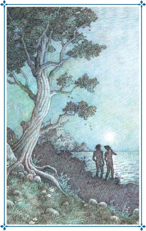 Замок был таким же, каким я его помнил: великолепный, роскошный, величественный. Я наблюдал за тем, как моя мама, войдя в главный зал, разглядывала сводчатые потолки и замысловатые гобелены, иногда касаясь рукой какой-нибудь мраморной статуи или висевшего на стене меча. Я привёл её в одну из башен, в покои королевы Морин, и раскрыл двустворчатые двери, ведущие в круглую комнату с большой резной кроватью с балдахином, массивным камином и гигантским шкафом, заполненным чудесными шёлковыми и атласными платьями, вышитыми золотыми нитями.