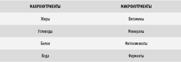 В 1930-х гг. ученые обнаружили витамины, минералы и части растений, которые обеспечивают нам «топливо» в форме калорий. Питательные вещества растений, содержащие калории, были названы учеными макронутриентами. Макронутриенты – это жиры, углеводы и белки. Все они содержат калории и нужны нам для выживания. Вода также считается макронутриентом, хотя калорий не содержит.