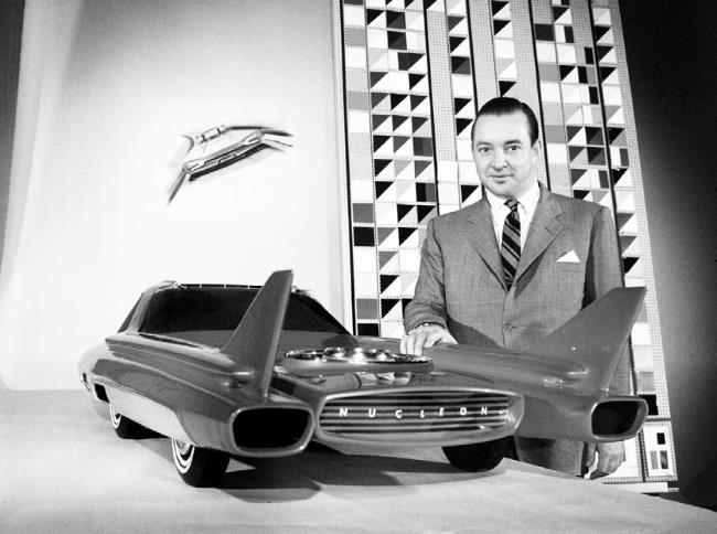 Уильям Клей Форд-старший, внук основателя компании Генри Форда, у модели Ford Nucleon 1957 года. Таковы были представления об автомобилях в эпоху атома.