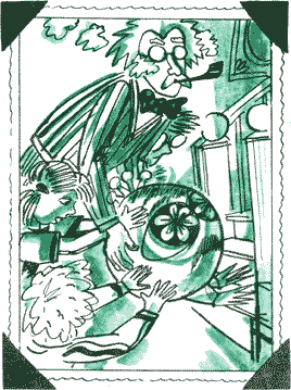 – Вот только как нашего друга поднять наверх? – сказал дедушка, недоуменно глядя на Сноггла. – Загвоздка в том, что у нашего яйцеобразного приятеля, – раздумывал он вслух, – нет ничего похожего на руки, чтобы подтягивать его, придется переставлять его со ступеньки на ступеньку, что будет нелегко. Интересно, мне кажется, или он в самом деле становится все тяжелее и тяжелее?