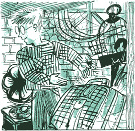 – О'кей. Я нашел отличный пустой чемодан в самом дальнем углу кладовки. Но вот не смекну, как мы протащим Сноггла по последнему пролету, там лестница гораздо ýже. Как по-твоему?