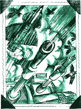 Но то, что они затем услышали, заставило их считать, что со всеми трюками и шутками покончено. Мальчики помчались в сад. Даже дедушка заторопился по мере сил. Пег вышла из дому не торопясь. Усидеть дома было невозможно, но вместе с тем, ее страшило то, что ей предстояло увидеть. Однако определить сразу, что же происходит, она не смогла. Раздавалась довольно громкая пальба, и Пег слышала, как Джеймс объясняет дедушке и Робину, что пущены в ход пушки и противотанковые орудия. Она пришла в негодование: