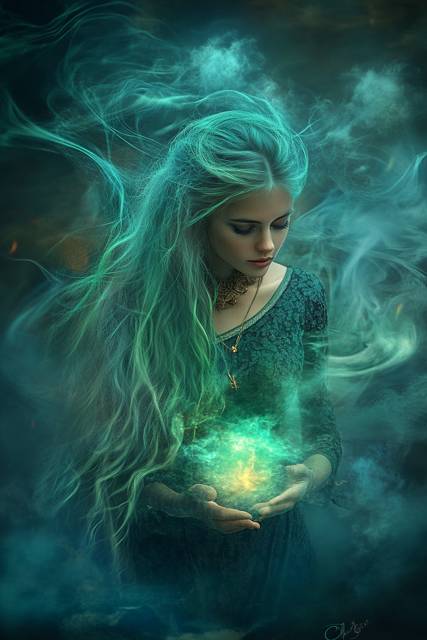 Берегиня уже была здесь, и за время что я её не видел она успела сменить своё белоснежное платье на куда более строгий аналог в зелёном цвете, и сейчас она стояла около вихря и что-то тихо нашёптывала в сияющий шар энергии на её руках.