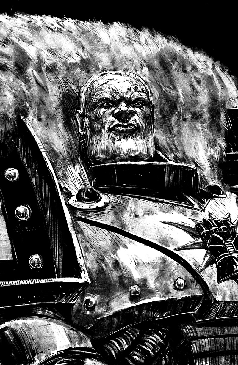 Очередь болтерного огня протянулась от ног великого Сангвиния. Взрывы расцвели на доспехе Дорна. Он даже не замедлился. Он снова выстрелил, и ещё одна фигура упала в брызгах расколотого черепа и кусочков мозга.