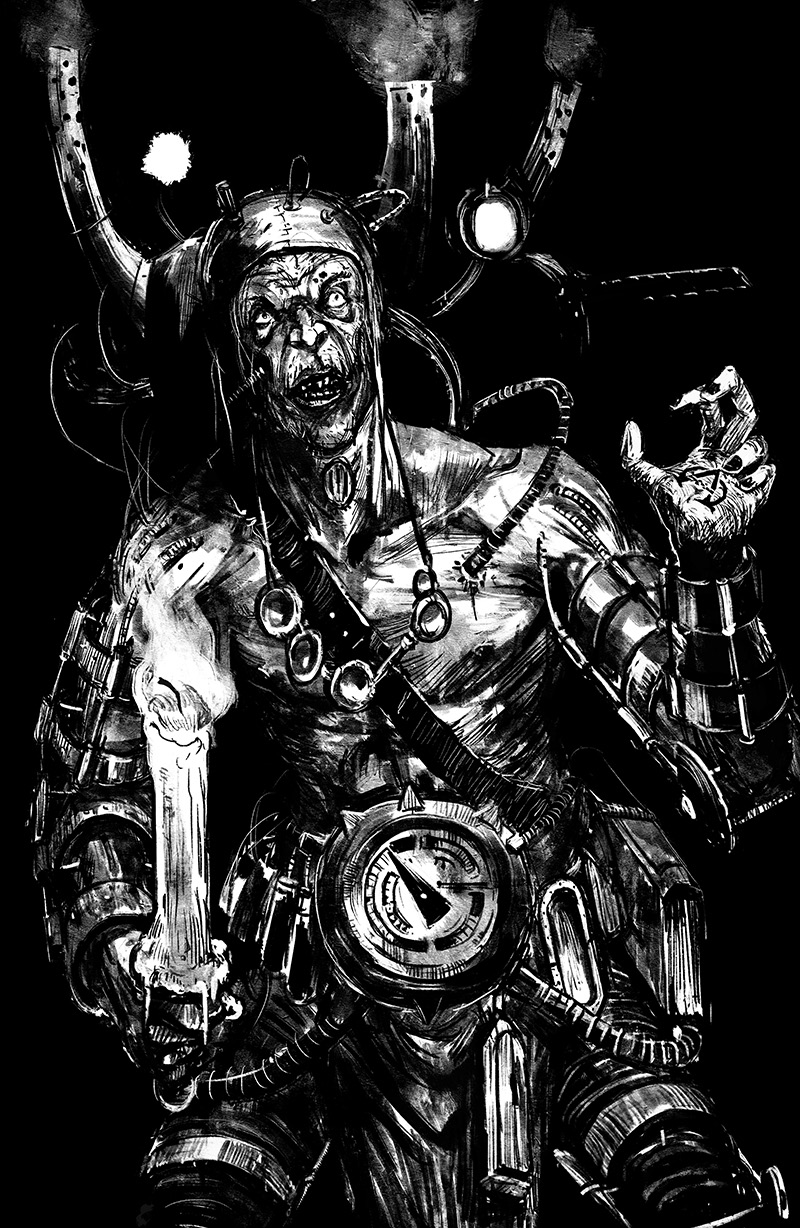 – Подойди, – велел Фокрон. Показалась тень и превратилась в фигуру сутулого человека. Аугметические скобы окружали тело со стойками и поршнями. На спине висел грохочущий силовой ранец. Руки и ноги были тонкими, лицо покрыто морщинами, кожа свисала под фиалковыми глазами.