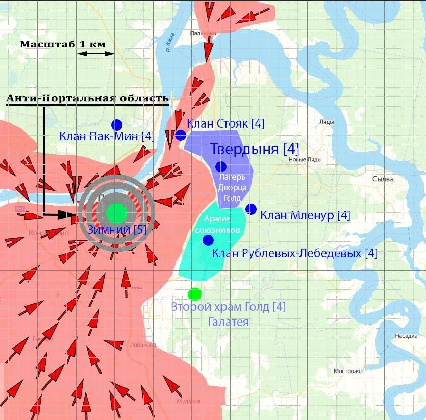 – Внимание! Зафиксировано две угрозы первого уровня! В области Перми обнаружена двухкилометровая область искусственно повышенного уровня астрала. Система распознала ее источник, как уникальное улучшение «Малый мир» для алтаря клана, запитанное от природного Источника маны. Зафиксированы маноотклики Пробуждённых от одного Монарха, десяти Рыцарей и восьмидесяти Витязей, ранее скрывавшихся в области манополя Зимнего [5]. Также есть четыре маноотклика от супермутантов Зараженных…