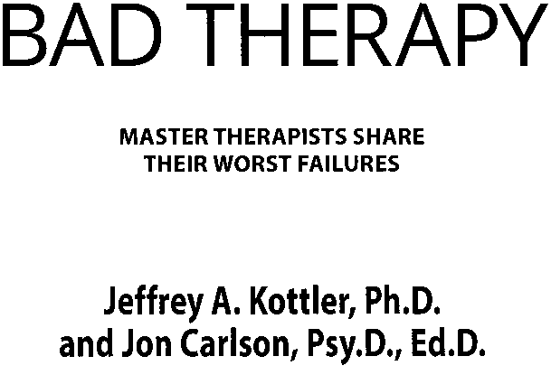 Как-то раз мы сидели и подтрунивали друг на другом, размышляя о том, до чего интересно было бы слушать ведущих специалистов, работающих на нашем поприще, если бы они чуточку честнее и откровеннее говорили о своих ошибках. Когда мы садимся в кресло психотерапевта и принимаемся за работу, это совсем не похоже на те “идеальные” демонстрационные сессии, которые показывают в рубрике “видео от экспертов”. Уж мы-то знаем это как никто другой, поскольку Джеффри Коттлер более 30 лет потратил на изучение психотерапевтических неудач и ошибок, а Джон Карлсон спродюсировал серию учебных видеороликов Psychotherapy with the Experts (Психотерапия с экспертами), в которую вошло больше ста записей с участием лучших психотерапевтов прошлого века, и при этом смотрел он не только те сессии, которые попали в окончательную версию, но и те, которые решено было удалить.
