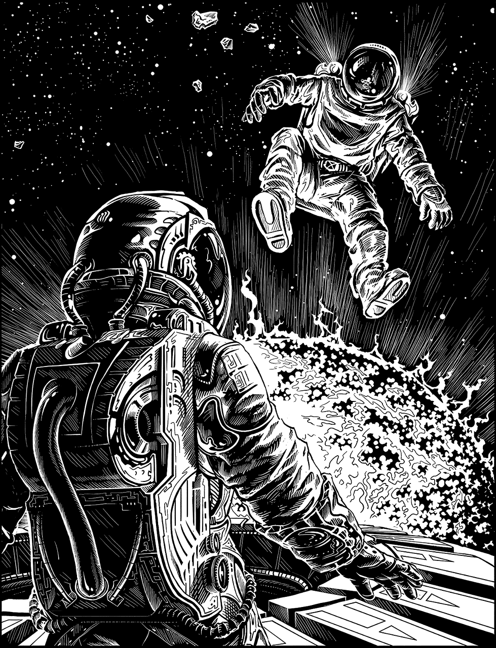 Лестер всё уменьшался и уменьшался. Его несло в пустоту, а из-за горизонта смертоносной печкой восходило солнце. Он летел в безжалостное ничто.