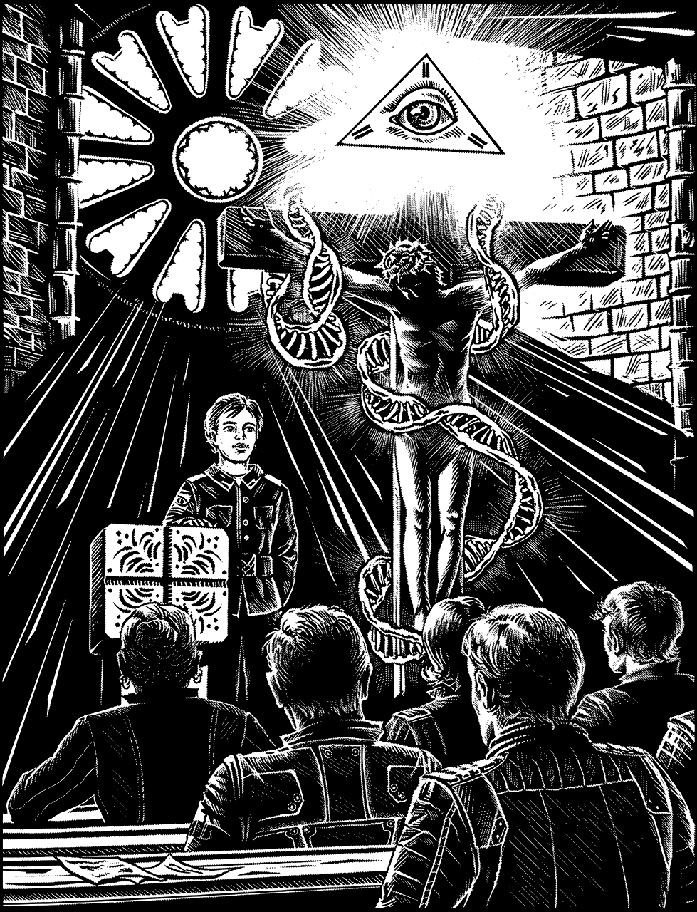 Тихонько загудев, возникла трёхмерная молекула ДНК и оплела двойной спиралью стальной крест.