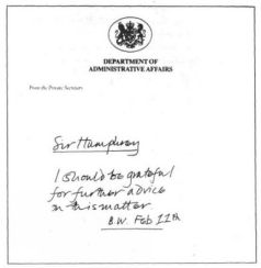 (Мы обнаружили в архиве несколько интересных записок, которыми в течение недели обменялись между собой сэр Хамфри Эплби и Бернард Вули. – Ред.)