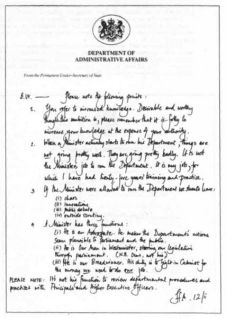 «Я был в то время довольно молод и совсем неопытен и не понимал, как претворить совет сэра Хамфри в жизнь: ведь министр лично назначил эти встречи и вообще взял все в свои руки.